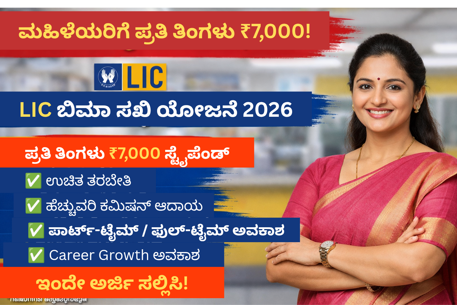 ಮಹಿಳೆಯರಿಗೆ ಪ್ರತಿ ತಿಂಗಳು ₹7,000! LIC Bima Sakhi ಯೋಜನೆ 2026 – ಅರ್ಜಿ ಪ್ರಕ್ರಿಯೆ, ಅರ್ಹತೆ ಸಂಪೂರ್ಣ ವಿವರ