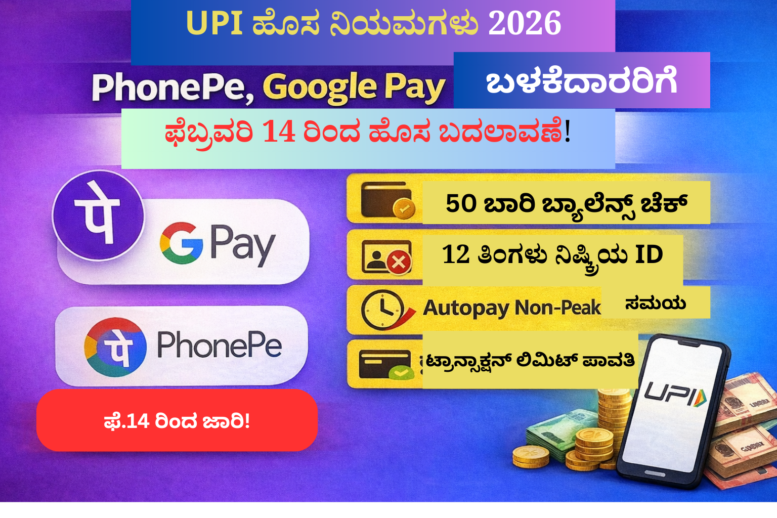 📢 PhonePe, Google Pay ಬಳಕೆದಾರರಿಗೆ ದೊಡ್ಡ ಅಪ್ಡೇಟ್! ಫೆಬ್ರವರಿ 14 ರಿಂದ ಹೊಸ UPI ನಿಯಮ ಜಾರಿ – ನಿಮಗೆ ಏನು ಬದಲಾವಣೆ?